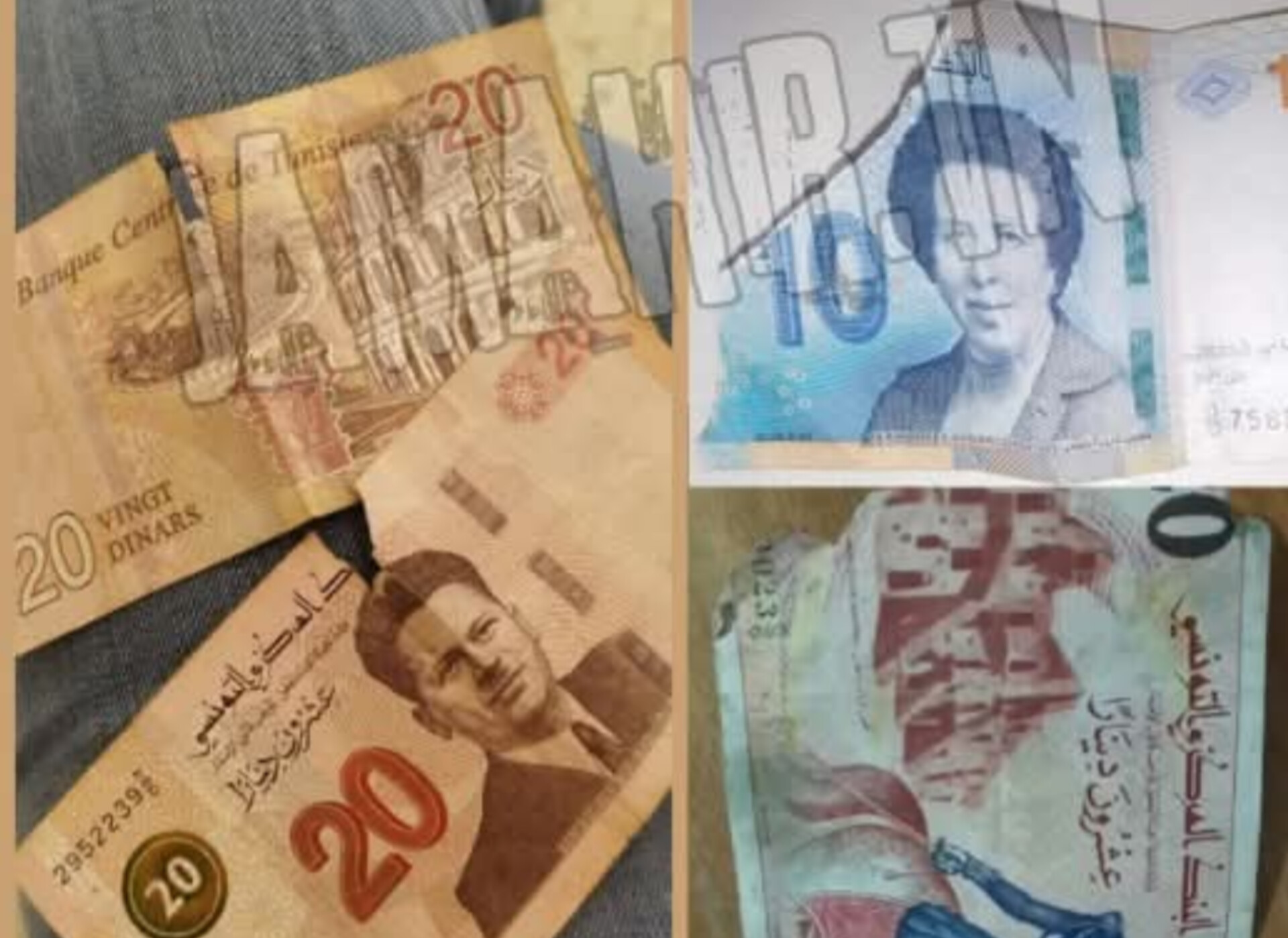 في الأسابيع الأخيرة، تفاجأ العديد من التونسيين بانتشار أوراق نقدية قديمة وممزقة من فئات مختلفة (10 و20 و50 دينارًا)، سواء عند سحب الأموال من الموزعات الآلية للبنوك ومكاتب البريد أو حتى خلال المعاملات التجارية اليومية.
