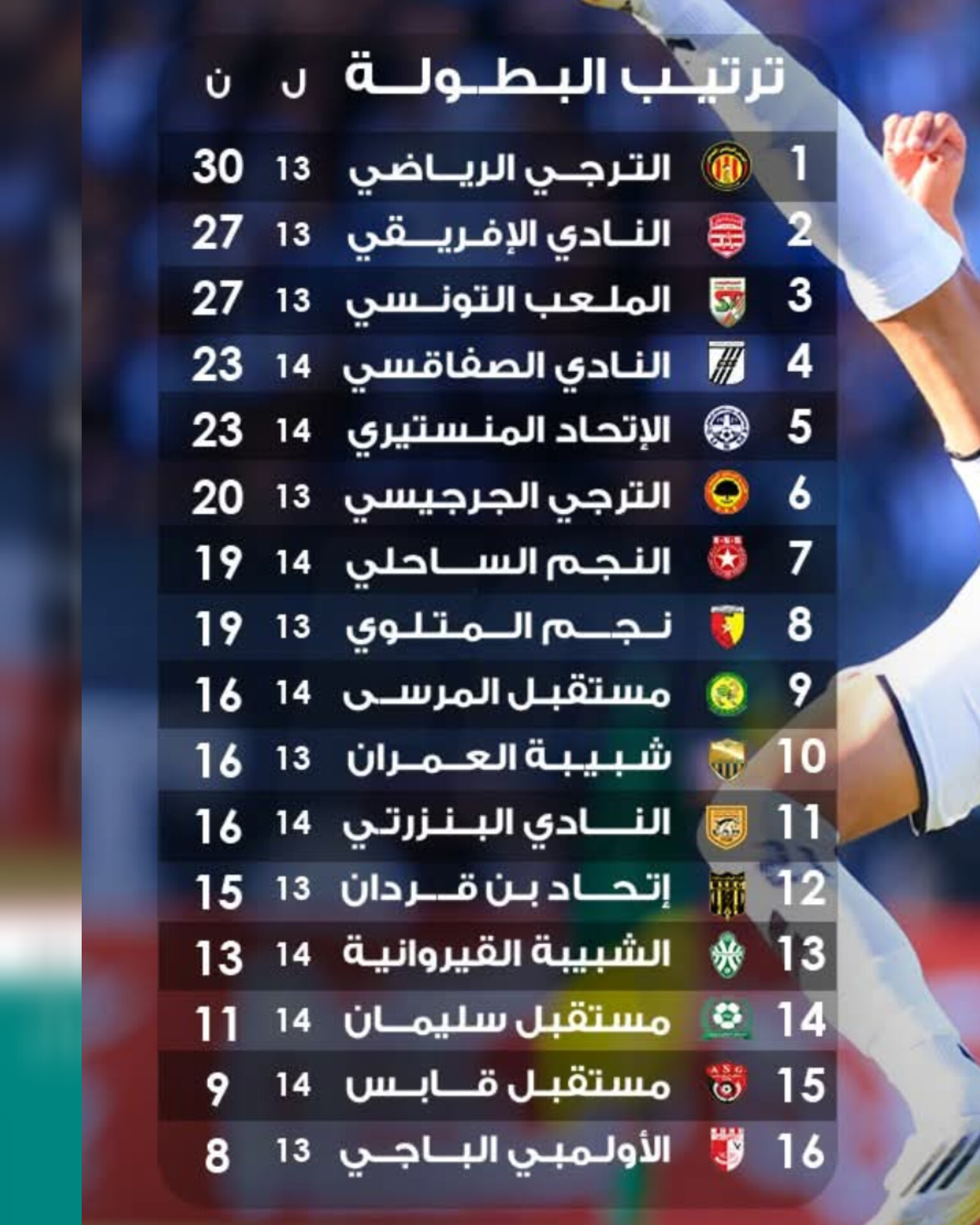 الرابطة الأولى: الترتيب الجديد بعد الدفعة الأولى من الجولة 14