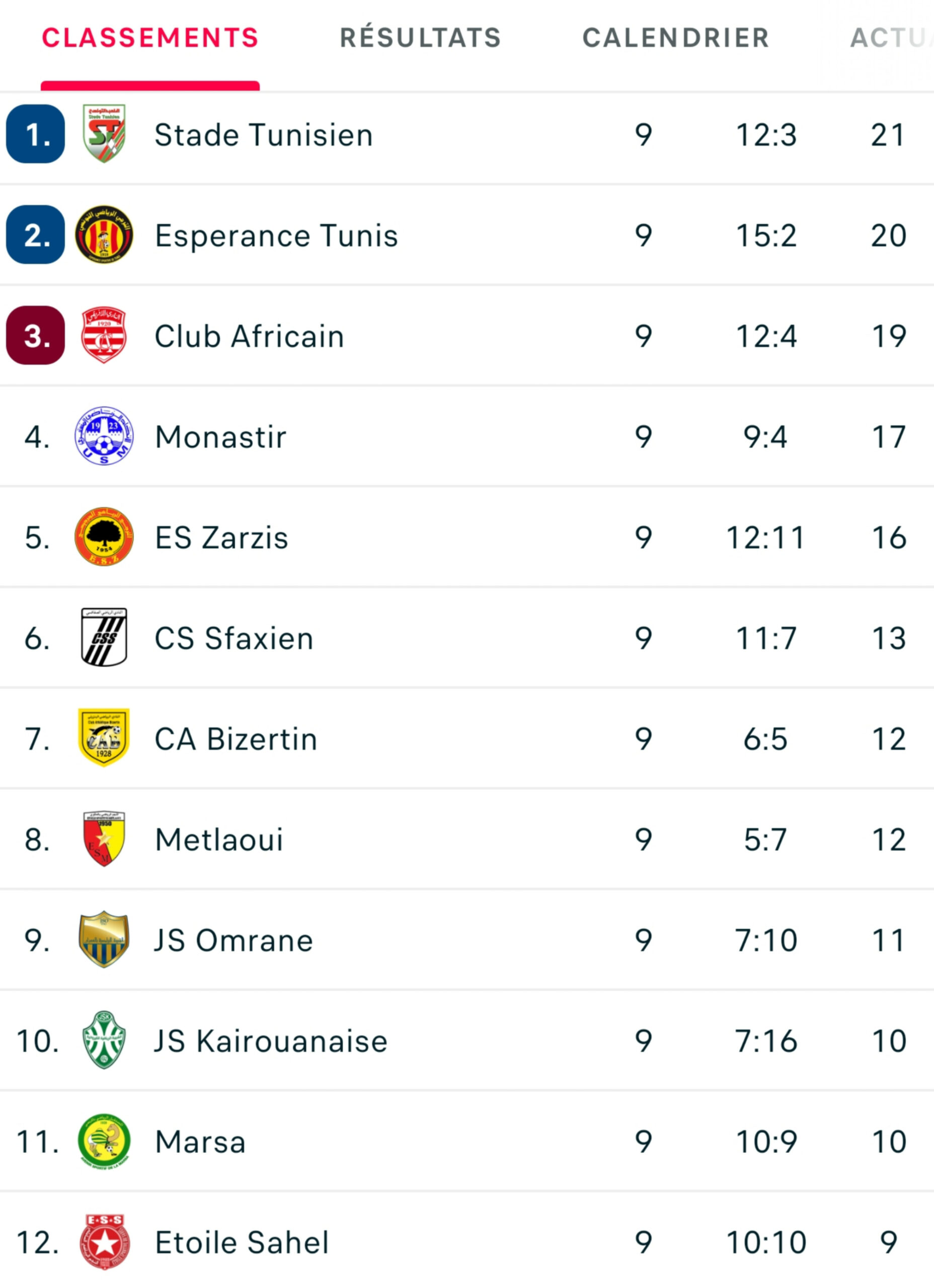 الرابطة الأولى – الجولة 9: النتائج الكاملة و الترتيب الجديد