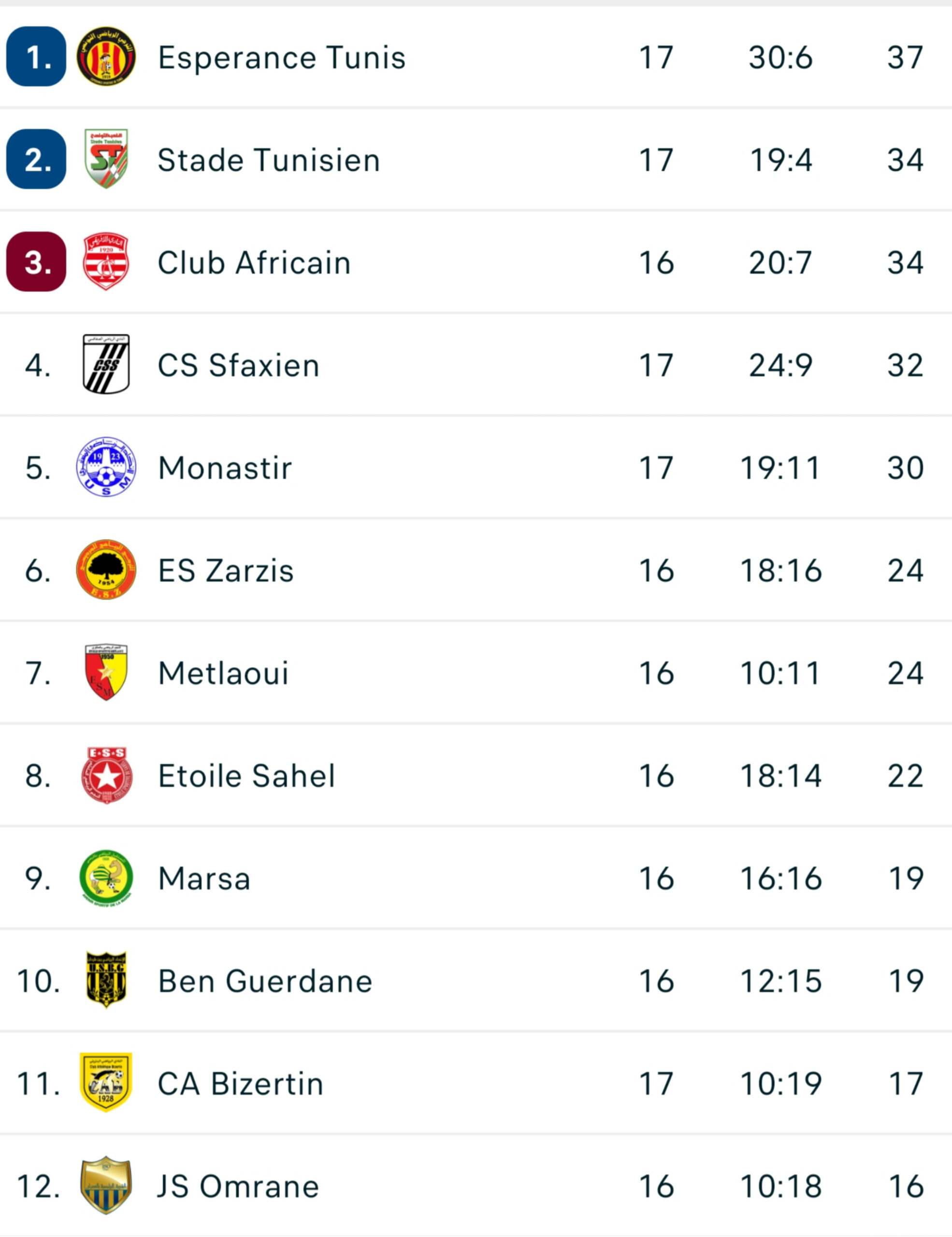 – النادي الإفريقي – النجم الساحلي.