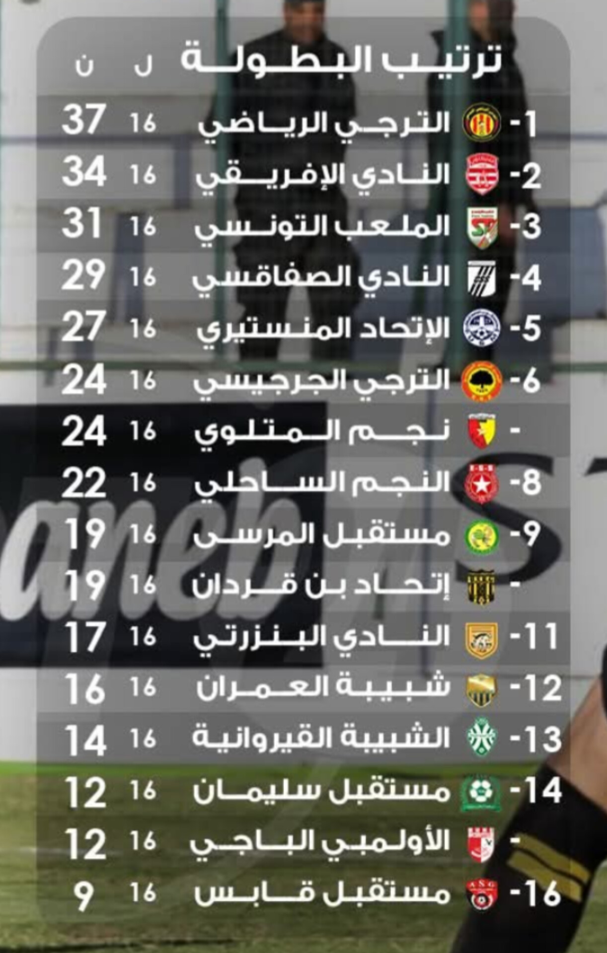 الرابطة الأولى: النّتائج الكاملة لمباريات الجولة 16 و الترتيب الجديد