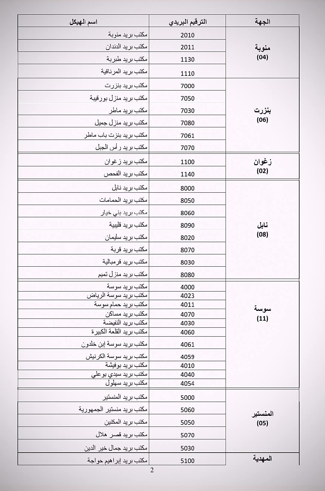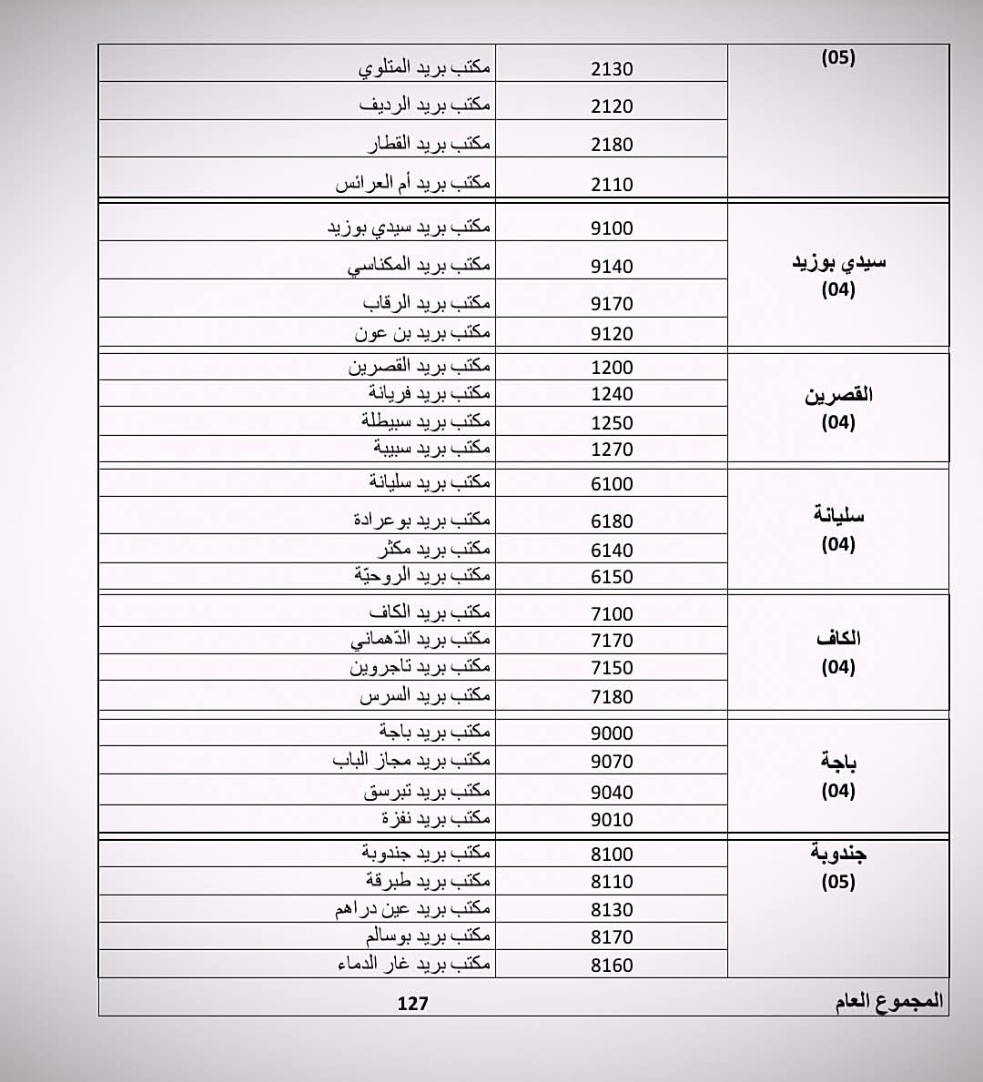 مكاتب البريد المعنية في مختلف الولايات