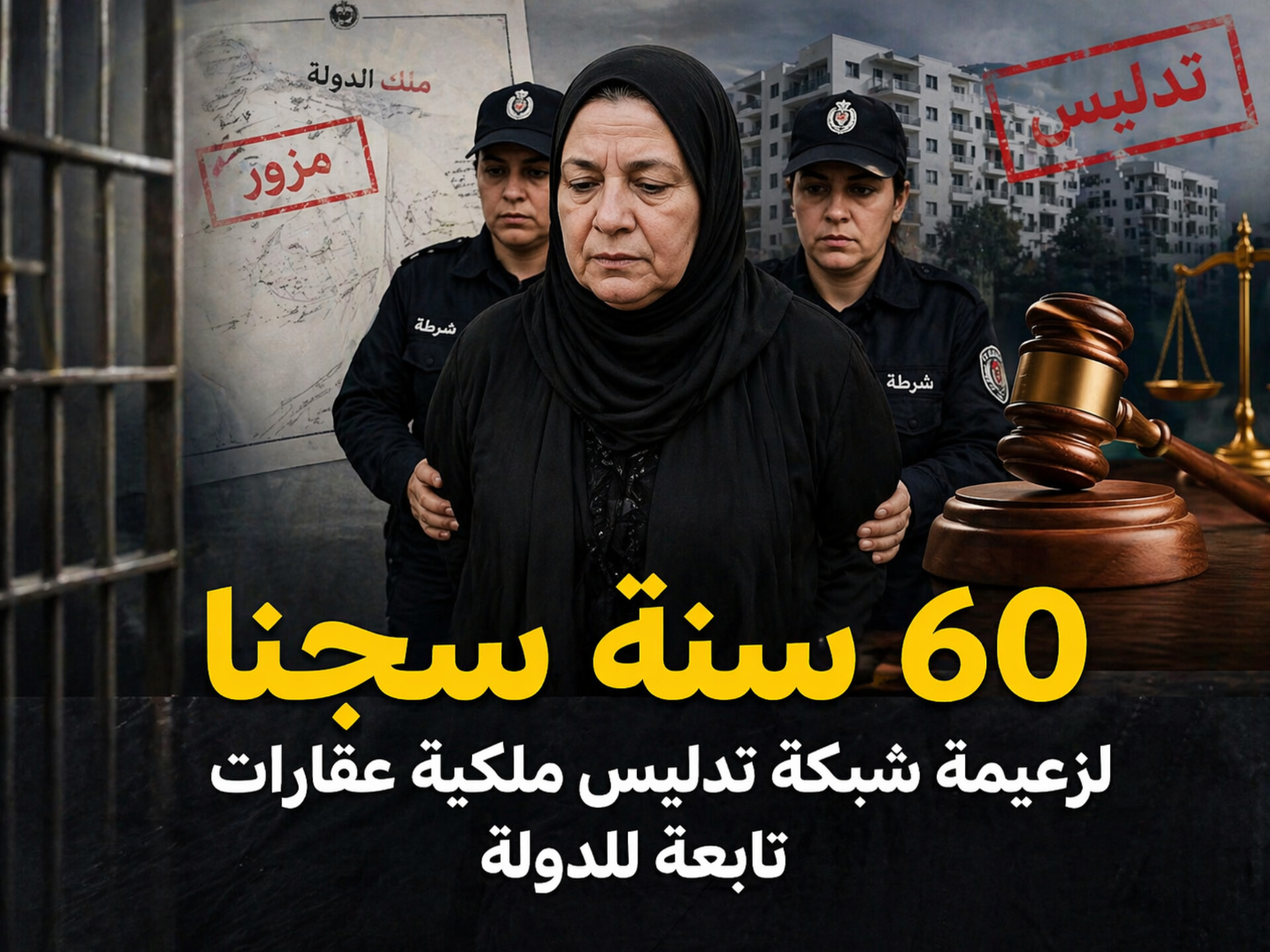 أصدرت هيئة الدائرة الجنائية بالمحكمة الإبتدائية بتونس، حكماً ثانيا يقضي بالسجن لمدة 30 عاماً في حق زعيمة شبكة إجرامية خطيرة تخصّصت في التدليس والتحيل للاستيلاء على ملكية عقارات تابعة للدولة وبيعها لخواص لتصل بذلك مجموع الأحكام الصادرة في حقها 60 عاما.