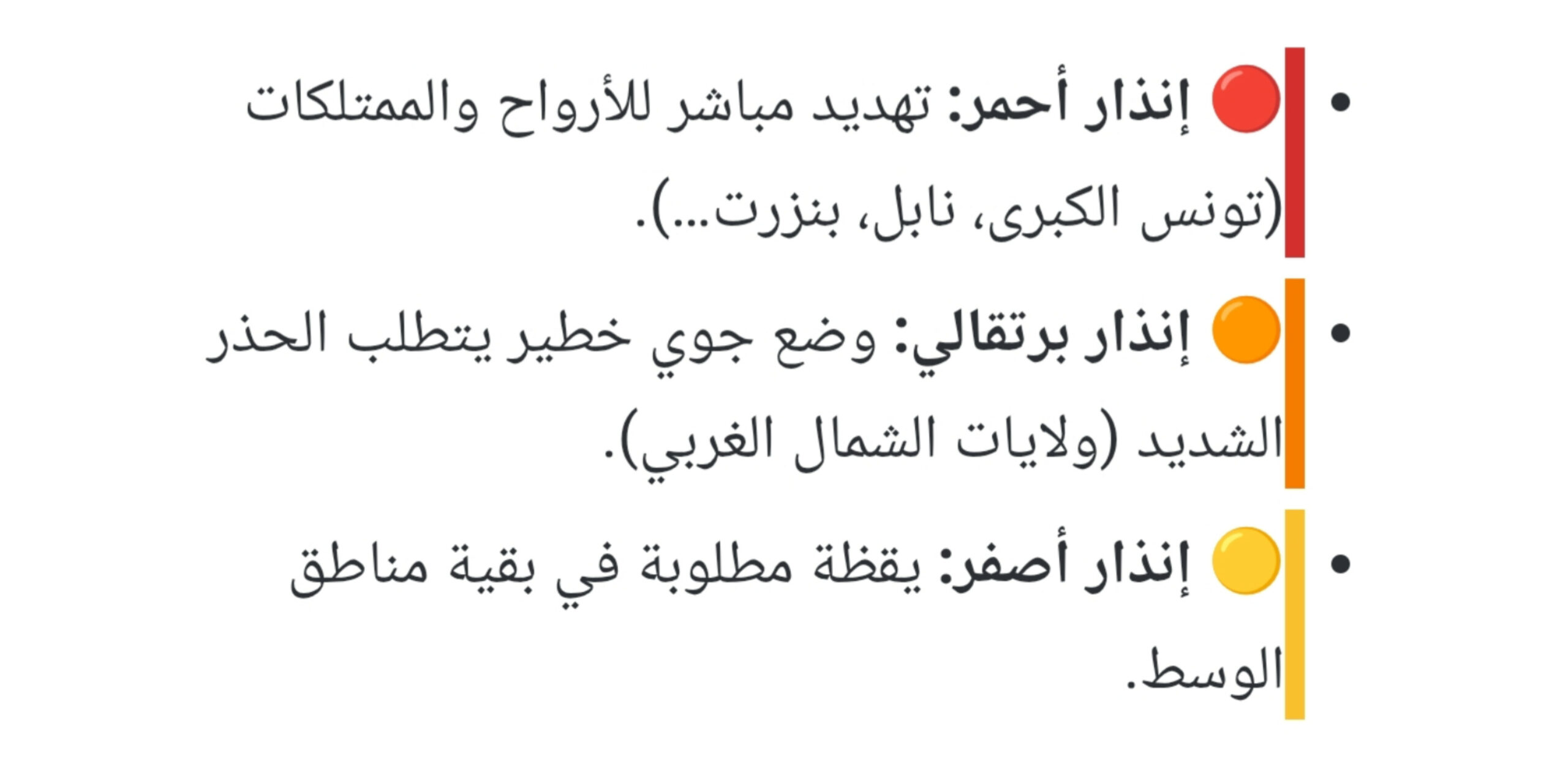 تفاصيل خارطة اليقظة الجوية