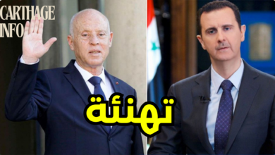 بشار الأسد يهنئ قيس سعيد تلقى رئيس الجمهورية قيس سعيد، الثلاثاء 8 أكتوبر 2024، برقية تهنئة من الرئيس السوري بشار…